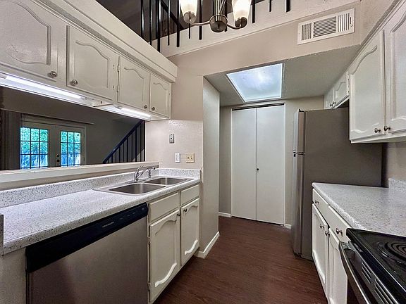 Incredible two bedroom two bath duplex in the the South Congress area, very close to downtown and Zilker Park. Unit has a bedroom downstairs, master bedroom upstairs. The backyard is fenced in. Washer and dryer connections are in a utility closet in the kitchen. This is a duplex, but it does not share a wall with the next door unit. There is a covered parking space. All properties within Neighborhood Realty and Property Management's portfolio are required to participate in a mandatory Resident Benefit Package. This suite of amenities is designed to improve the quality the tenant's experience while living in the property and maintain lease compliance. The cost of this program is $43 per month