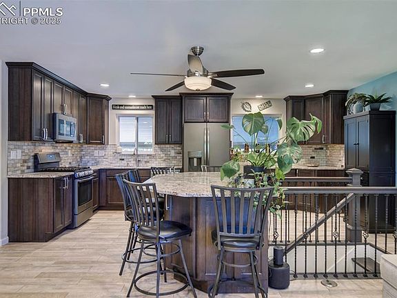 Welcome home to this charming ranch-style gem offering 1,826 square feet of stylish living on a spacious corner lot! Inside, you’ll love the updated kitchen featuring stainless steel appliances, granite countertops, and modern finishes throughout. The primary suite is a standout—complete with its own fireplace and a custom walk-in closet designed with organization in mind. Two additional bedrooms are located downstairs, with a family room and full bath offering privacy and flexibility for guests, hobbies, or working from home. Enjoy Colorado evenings on the large covered back patio, or relax on the inviting front porch, and take advantage of the backyard shed for extra storage. Conveniently located near Fort Carson, parks, schools, and shopping—this home is a perfect fit for first-time buyers or anyone looking for a move-in-ready space in a great location.