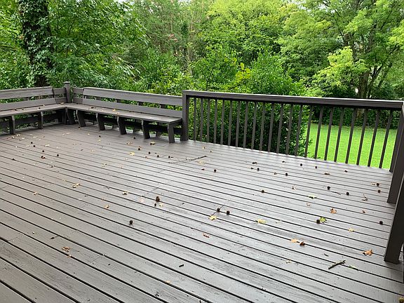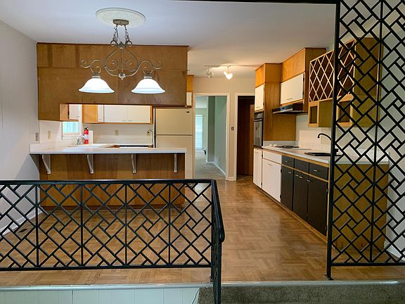 There is a very large living room, eat-in kitchen, dining room, huge den off the kitchen with a fireplace , laundry room, deck overlooking the big back yard, 2 car garage, 3 or 4 bedrooms (rec room) and 3 full bathrooms.