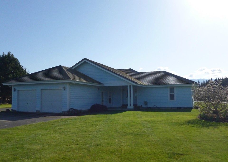 Beautiful mountain view from this well-built home in the country. Gracious entry; master bedroom is separated from other two. Great room with large area for kitchen, dining & living. Lots of storage in home & garage. One bdrm & dining room have glass door access to deck. Spacious laundry room. 726 sq ft in garage. 1.24 ac & paved driveway; RV hook-up with water & power. 2 storage bldgs on east line. Roof is concrete shake.