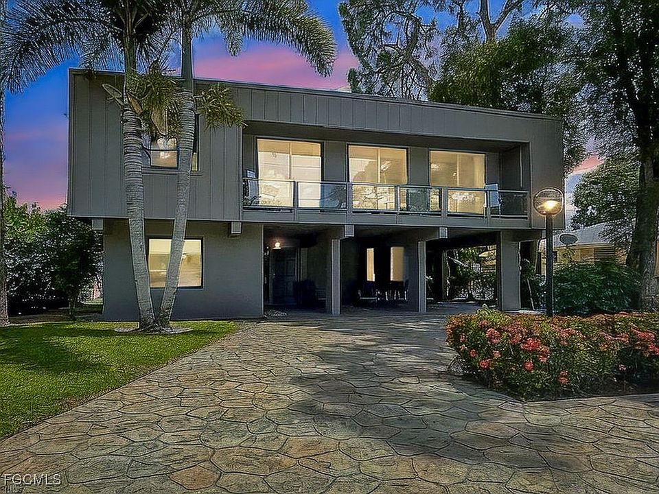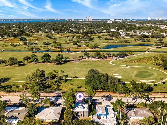 Designed and built in 1973 by and for the noted SW Florida architect Edgar Wilson, this 2 bedroom, 2 bathroom + den 1548 sq.ft. home has it all! If you want quality, style, generous rooms, and a flexible floor plan this is a must see! Upon entering on the lower level, there is a primary/guest bedroom and bathroom with lots of closet space next to a full-size utility room with storage. As you ascend to the second floor you will experience the magnificent, expansive and verdant golf course views. The kitchen, dining room, office/den, living room and television alcove blend seamlessly and offer style and thoughtful function. Two covered and spacious viewing decks, one for the front and the other in the rear. This home represents a very unique opportunity full architectural excellence…schedule a private tour!
