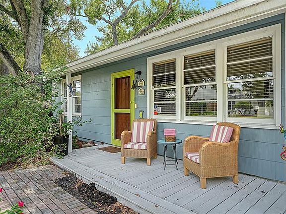 Step into this West of the Trail Charmer, Sarasota’s most sought-after neighborhood… where the canopy of mature trees, coastal breezes, and timeless architecture set the stage for an unparalleled lifestyle. Perfectly positioned just steps from Southside Village’s restaurants and boutiques, and only a short drive to Downtown Sarasota, the Bayfront, and the powdery sands of Siesta Key, this property places you in the very heart of it all. This two-bedroom, two-bath gem effortlessly blends whimsy with warmth. Inside, recent updates bring fresh life to its character, while a raised ceiling in the living area adds volume and light. Adding to its timeless appeal are the Pecky Cypress walls - a rare Old Florida detail that infuses warmth, texture, and both a rustic and refined feel throughout. Out back, an enchanting outbuilding awaits— an above-garage air-conditioned bonus room makes perfect artist’s studio, garden retreat, or creative bonus space. Whether you choose to live in and love this property as it is, or design your own custom residence, this location is second to none. With its “Old Florida” charm woven seamlessly into an urban lifestyle, West of The Trail continues to be the crown jewel of Sarasota living. Roof - 2021, AC - 2017, Tankless Hot Water Heater - 2023