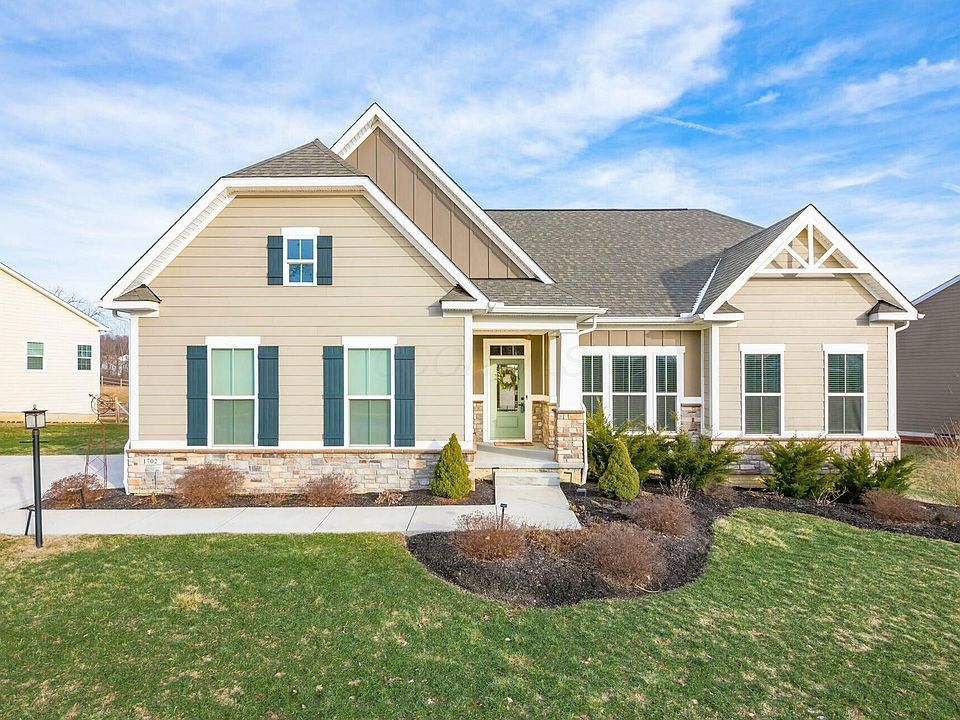 Stunning home in the Ravines at Hazelwood (SW Licking Schools) featuring 4 BR, 3 BA & nearly 2500 SQ FT of living space w/ UPDATES GALORE! Main level includes NEW FLOORING, high ceilings & an OPEN LAYOUT featuring GOURMET KITCHEN (granite, center island, SS appliances, pantry), lg DINING AREA & oversized GREAT RM. Completing the 1st floor is the PRIMARY BDRM SUITE (tray ceiling, deluxe BA, dual WICs), 2 add'l BDRMS, shared BA & LAUNDRY RM! 2nd floor features a GUEST SUITE w/ private BA. Huge unfinished LL has endless possibilities with an egress window & rough-ins (4th BA & wet bar)! Outside discover a GORGEOUS PATIO w/ pergola, water feature, firepit & landscape lighting overlooking the FENCED-IN BACKYARD. Wonderful location close to shopping, restaurants, parks & schools! Welcome Home!