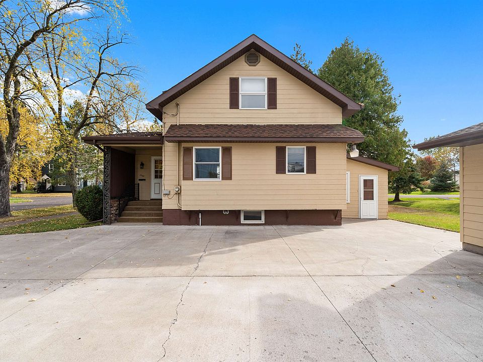 Full of charm and character, this traditional 2-bedroom, 2-bath home in South Superior offers space, warmth, and potential. Built in 1921, it’s been thoughtfully cared for over the years and features a spacious living room, dedicated office, and a large kitchen and dining area with hardwood floors, perfect for everyday living and gathering. Both bedrooms include walk-in closets, and you’ll find two additional walk-in closets on the stairway landing, providing exceptional storage space throughout the home. The updated bathroom features a walk-in shower with glass doors, a modern vanity, and new lighting. Enjoy the enclosed 3-season porch, the ideal spot to take in the crisp fall air and neighborhood views. The corner lot offers mature trees, a well-manicured lawn, and a massive 3+ car heated garage with electricity, perfect for extra storage or a workshop. With solid structure, timeless character, and plenty of space to make your own, this home is ready for your personal touch. Conveniently located near a school, shopping, dining, and parks. Experience the warmth of South Superior living in a home built to last.