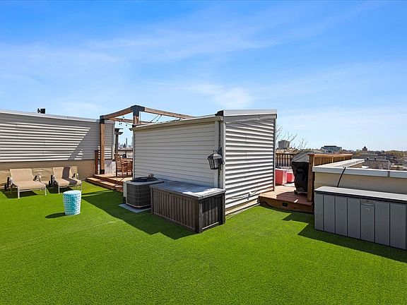 If you have been patiently waiting for an extremely spacious top floor condo with a stunning private roof deck, in a great Logan Square/Bucktown location, with a garage....your wait is over! Welcome to this corner penthouse unit in an all-brick building that is like no floorplan you have seen before. This duplex-up home has oversized rooms, loads of updates and the ultimate private outdoor spaces. The main level has an open floorplan with a stunning new kitchen with grey cabinets, stylish tile backsplash, open shelving, additional beverage fridge, breakfast bar, quartz counters, and a photo worthy walk-in pantry with built-in shelving, backsplash, butcher block counter, and has outlets to serve as a coffee bar. The living and dining room benefit from large windows with loads of south facing light, a corner gas fireplace, built-in speakers, and a large west facing balcony. Also on the main level are the oversized 3rd bedroom with walk-in closet and en-suite full bathroom; the bathroom has a 2nd door to be accessible to the main living area. The 2nd level features a shockingly spacious and luxurious primary suite that will be sure to impress...the primary bedroom is huge and has south facing windows, access to another balcony, 2 professionally organized walk-in closets, and a huge bathroom with a shower that is bigger than some Chicago bedrooms! The shower is steam ready, and there is a separate whirlpool tub and double sinks. The 2nd level also features the 2nd bedroom with south facing windows, a hallway area with built-in bookcases, 2nd full bathroom, and a newly remodeled laundry room with side-by-side washer/dryer, built-in shelving and a window! The 3rd level has a landing with cabinets and beverage fridge and leads out to the giant private roof top deck that spans the footprint of the unit. Featuring several seating areas, you can enjoy the city skyline view from various locations including the lounge area and the dining area with pergola; and there is a large turfed area as well! The building allows rentals, has additional storage in the basement, and a garage parking space is included. This WOW location (West of Western) is perfect for proximity to the 606, the Blue Line, and so many dining, shopping and nightlife in Logan Square and Bucktown, including favorites like Wolf and Company, Barabaro, Margie's Candies, Ava's Italian Ice, Marz Brewing, Middlebrow, Gretel, The Freeze, Small Cheval, Agora Market, Royal Palms, Ramen Wasabi... to name a few!