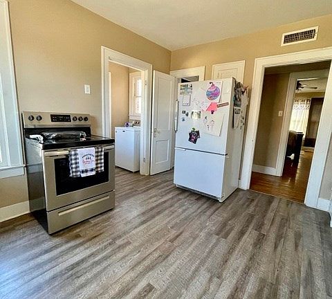 Charming brick home with the perfect front porch. Lots of recent updates including paint, fixtures and flooring in the kitchen and bathrooms. Third bedroom is an amazing oversized space upstairs that could serve many purposes. The refinished, original hardwood floors remain in the majority of the house. You will love the extra large dining room, rock fireplace and breakfast area with built in buffet and glass front cabinets.