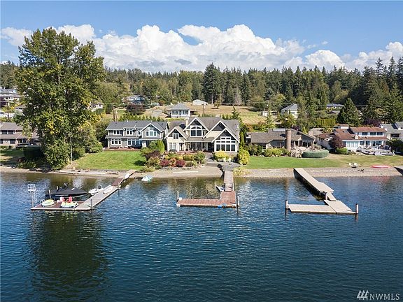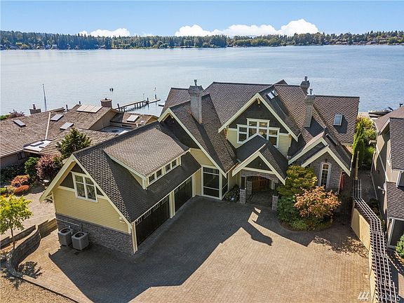 Lake Whatcom Waterfront Architectural Gem! Recently constructed NW contemporary masterpiece facing due west. Enjoy lake front living on a low-bank sandy beach with sensational sunsets. World class architecture accented by hand-crafted extravagant finishes. Superlative chef's kitchen ideal for catered events. Day spa-like master bath, 5 unique gas fireplaces, 1000 sq. ft. deck & a dedicated office. One of the most recognizable residences on the sunny North Shore, this is truly a trophy home.