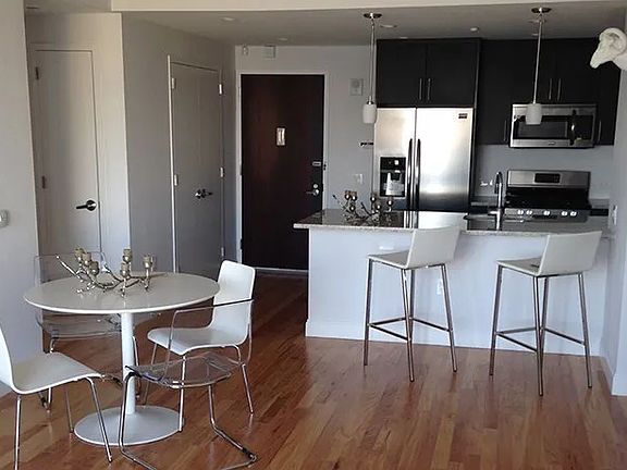 NO BROKER FEE Updated 4th floor new and modern 1/Bedroom 1/Bathroom now available within a minute walk of NYC transit and a stone's throw from Hoboken. Hop on the bus and reach port authority in less than 15 minutes. NYC Ferry and light-rail are both a 10 minute walk. Whole foods market is 10 minute walk. Spacious 1/Bedroom 1/bath comes with open style L shaped and modern kitchen that overlooks the living room. Spacious and long living room can fit ample furniture Amenities include pool overlooking NYC / fitness center / 24/7 concierge / resident's lounge as well as private business conference room. Pets allowed with a fee. Laundry in unit.