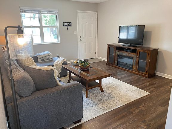 Brentwood Forest Beauty Renovated 2BR Main floor End Unit! Welcome to this beautifully updated 2-bedroom, 1-bath first-floor end unit in sought-after Brentwood Forest! Fully renovated in 2020, this move-in-ready condo features a modern kitchen with stainless steel appliances, updated cabinets, sleek countertops, and stylish lighting. The bathroom, flooring, and paint have all been refreshed for a clean, contemporary feel. New AC unit installed in 2020. Enjoy outdoor living with two sliding glass doors leading to a private deck. Located in a vibrant community with walking trails, two pools, tennis courts, and a clubhouse all just minutes from restaurants, shopping, and easy highway access (Hwy 40/64 & 170). Don't miss your chance to live in one of Brentwood's most desirable neighborhoods! Includes pool pass, sewer, water, trash, snow removal, lawn care. Renter responsible for electric.