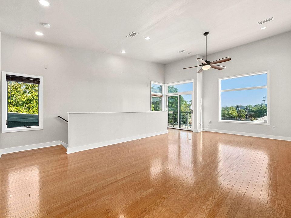Don’t miss this fantastic large, well appointed, two bedroom unit in an optimally located community on the quickly developing S. Lamar strip with easy access to all of south and downtown Austin. Situated at the rear of the community away from the bustle, this peaceful, low maintenance, 3-story townhouse offers 10 ft ceilings, classic finishes, hardwood flooring throughout, large windows, multiple storage closets, and a 2-car garage. Both bedrooms offer en suite bathrooms (with endless hot water supplied by a tankless water heater); the primary bath with dual vanities, large shower, and linen closet, while the second bath contains a deep tub for soaking away your stressful day. The highlight is the top floor’s open plan of kitchen, dining and living spaces offers expansive windows on 3 sides, a soaring cathedral ceiling, recessed lighting, ceiling fan, gas range, and abundant counter space and cabinets are perfect for cooking, entertaining and relaxing. The location offers easy walking to local restaurants such as Snooze, El Raval, Brown’s BBQ, Loro, Odd Duck, Ramen Tatsu-Ya, Uchi, Eberly, plus entertainment venues of The Saxon Pub, Alamo Drafthouse, Bouldin Acres, and numerous other coffee shops and retail, along with all that Barton Springs Rd offers including Zilker Park and Ladybird Lake. This home combines stylish living with exceptional urban convenience, perfect for full-time living, lock and leave or as a top quality rental.
