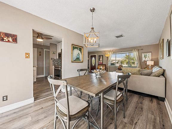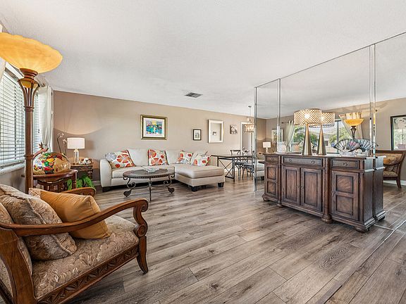 Great value for this updated Challenger with split bedroom arrangement with two master suites. Lots of privacy on this small canal location. Minutes to I95, Ocean beaches and shopping. Tile and Flat roof replaced 2023 by AAM Roofing. Lennox A/C 2020. Hurricane impact picture window in front living room and den window. Front door hurricane Impact. Luxury Vinyl waterproof plank flooring. Electrical panel replaced. Hot water heater replaced 2023. Kitchen cabinetry replaced plus granite countertops and pantry. Family room and Enclosed tile porch leading out to oversized patio for barbecuing and outside entertaining. Active community with 3 heated pools, 3 clubhouses, fitness ctr. FREE 18 HOLE Par 3 golf. Paid up rec lease in full. Guest BR virtually staged.