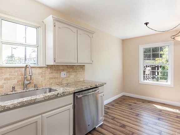 Remodeled, spacious single family home...for the price of a condo! Step through the inviting garden entrance to find a special home that has been lovingly upgraded and is ready for you to move right in. The kitchen remodel is now complete with stainless steel appliances, neutral granite slab countertops and tumbled travertine subway tile backsplash. Additional amenities include double-pane vinyl windows, fresh neutral paint, beautiful flooring throughout (no carpet here!), ceiling fans, recessed lighting, skylight, a laundry area and lots of storage space. The luxurious Master bathroom boasts a spa tub, shower, slate tile, brand new pedestal sink and toilet. The second full remodeled bathroom is even larger than the Master and features a 2 person soaking tub, dual shower heads, neutral tile and granite countertop. Lushly landscaped front and backyards include an abundant avocado tree, tranquil waterfall fountain, flagstone patio plus enclosed grassy yard ideal for pets and kids. Centrally located close to California Distinguished Birney Elementary School, Perry Park, shops, restaurants, the beach and freeways. Don't miss your chance to call this delightful property...home!