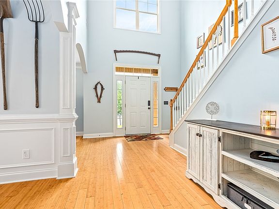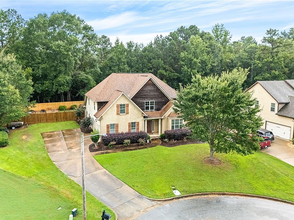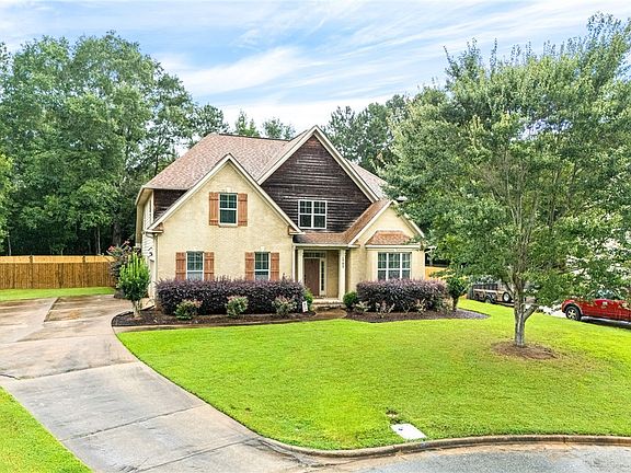 Spacious 5-bedroom, 3.5-bath home located in a quiet cul-de-sac with a massive backyard, perfect for outdoor living and entertaining. The inviting foyer opens to a formal living room featuring a soaring vaulted ceiling and a cozy wood-burning fireplace, alongside a formal dining room that flows seamlessly into the large kitchen. The kitchen is a chef’s dream with granite countertops, stainless steel appliances, excellent storage, and a raised bar with seating. The main-level master suite offers a walk-in closet and a luxurious en suite bath with a double-sink vanity, soaking tub, and step-in shower. Upstairs you’ll find four additional bedrooms and two full bathrooms, providing plenty of space for family or guests. Enjoy relaxing or hosting gatherings on the covered back porch overlooking the huge private yard, all in a prime location that blends comfort, space, and style.