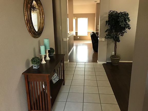 Beautiful bright 3 bedroom, 2 bath open floor plan with skylight. Spacious kitchen that opens up to family room with fireplace. Tile and laminate wood floors in living areas. Large master bedroom with dual sinks and large garden tub. Efficient new AC unit with Nest thermostat. Highly-rated area schools: Hawk Elementary, Crownover Middle School, Guyer High School within walking distance.