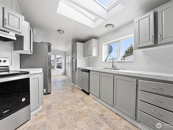 This beautifully updated 1456 sq. ft. home features a brand-new roof and stylish flooring throughout. The kitchen boasts sleek stainless steel appliances, perfect for any chef. With a neutral color palette and plenty of windows, the home is bright and airy. The split-bedroom layout includes a spacious primary suite with a luxurious en-suite bath, double sinks, and a soaking tub. French doors lead to a den or home office. Move-in ready and located in a prime Moses Lake area!