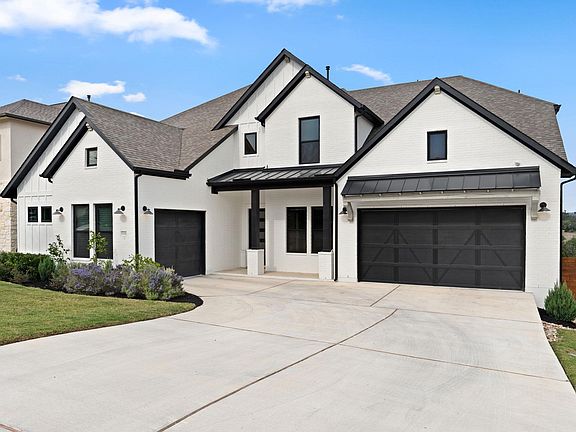 Built in 2023, this spacious two-story home in Provence offers 4,365 sq. ft. of thoughtfully designed living with Hill Country and greenbelt views. The open floor plan features an XL kitchen, dining, and living area that flows seamlessly to an oversized covered patio with a built-in outdoor grill—ideal for everyday living and entertaining. The first floor includes hardwood flooring, high ceilings, abundant natural light, two bedrooms on the main level, and a dedicated office. The kitchen offers a large island, quartz counters, stainless steel appliances, gas cooktop, double ovens, and a walk-in pantry. The living room includes a gas fireplace and expansive windows overlooking the greenbelt. The large primary bedroom features high ceilings, two closets, a soaking tub, a walk-in shower, and direct access from the primary closet to the laundry room for added convenience. Upstairs offers flexible space with a large gameroom, movie room and an open office/craft area. Two additional bedrooms and full bathrooms complete the upper level. The backyard faces a greenbelt, creating a sense of privacy and connection to the Hill Country. A three-car garage completes the home. Located within the Provence community, residents enjoy access to walking trails, parks, pool, clubhouse, and playground. Zoned to Lake Travis ISD.