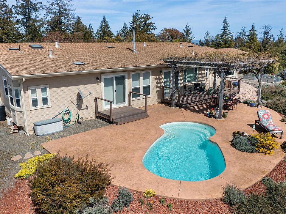 Imagine a home perfectly placed where the only sounds you hear are birds and trees. A place where you're not secluded, but peaceful, tranquil, and where nature and wildlife are bountiful. This modern well-maintained, off-the-grid, single-level home offers 4 bedrooms, 3 bathrooms, 2498 square feet of living space and sits on 2.67 acres. The outdoor living space is all encompassing with views, raised garden beds, and sparkling pool! There's a 2-car garage and plenty more room for additional parking. Enjoy the most energy-efficient, low-cost lifestyle without sacrificing the comforts of modern conveniences.