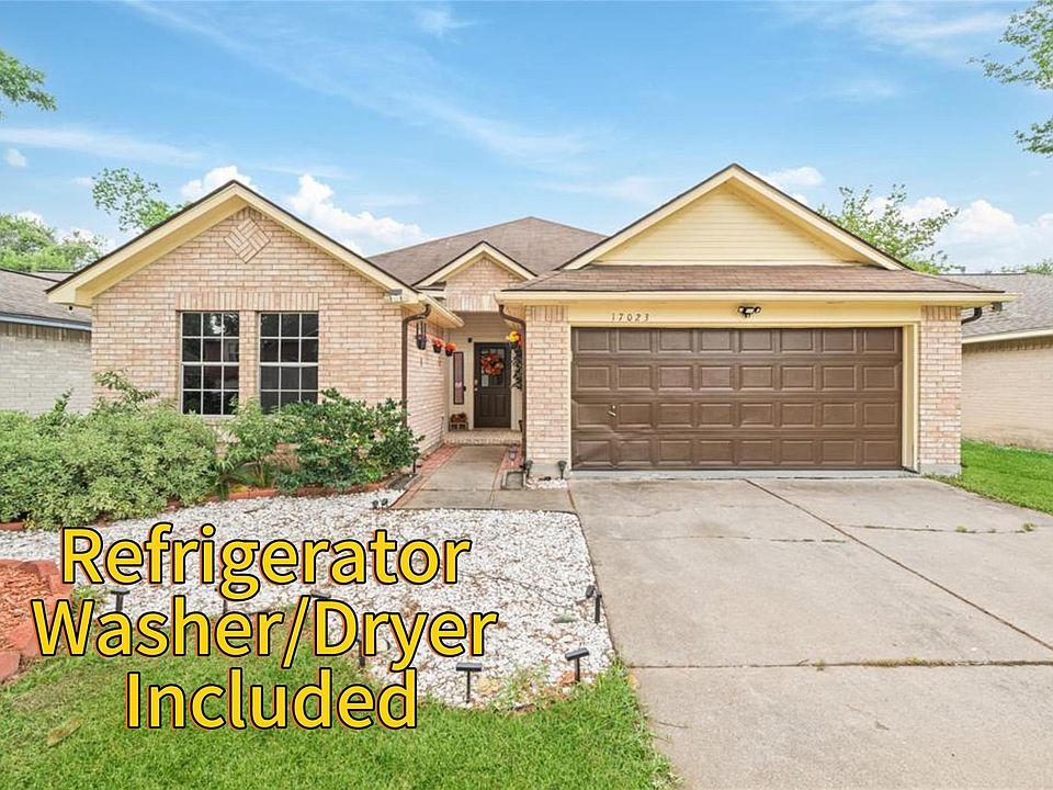 This beautifully maintained 3-bedroom, 2-bathroom home is located in the quiet and established neighborhood of Pheasant Creek in Sugar Land. Featuring an open-concept layout with high ceilings, a spacious living area with a wood-burning fireplace, and a well-appointed kitchen with a gas range, breakfast bar, and pantry, this single-story home offers comfort and functionality. The primary bedroom includes a walk-in closet and is part of a split-bedroom floor plan for added privacy. Laminate and tile flooring run throughout, and ceiling fans are installed in key areas. Outside, enjoy a private fenced backyard with a patio ideal for relaxing or entertaining. The home also includes a 2-car attached garage, washer/dryer hookups, and is zoned to excellent Fort Bend ISD schools. Conveniently located near parks, shopping, and major roads.