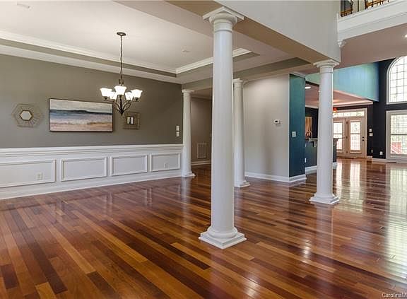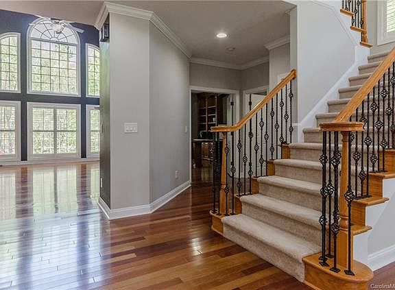 Former Model Home w/all the upgrades! Beautiful Brazilian Cherry flooring throughout the main living areas! Cathedral ceilings in the Entry! Load of additional moldings throughout this home! Executive Office features custom built-in desk & book shelving! Additional Shelving in 2-Story Great Room w/Gas FP. AWESOME Kitchen w/Granite, Breakfast bar,designer back-splash,Walnut Cabinets,SS Appls=Gas Stove Top & Double Ovens! HUGE Custom Pantry! Master Suite on the MAIN w/14 ft Ceilings, his & hers HUGE Walk-in Closets,Tons of moldings,Double Trey Ceilings & French Doors exiting to exterior deck. Luxury Master Bath w/Extended vanities, HUGE Walk-in Shower & Garden Tub. 2nd Level:Loft area w/Juliet Balcony over-looking Great Room, 3 beds,1 Jr Suite, 2 other Full Baths Bonus Room w/Custom Bar for entertaining! 3rd Level:Full Bath w/Bedroom! Loads of Storage throughout this home! FENCED YARD,Corner Private Lot! Come See what the Palisades offers! Close to Lake Wylie,Restaurants & Shopping!