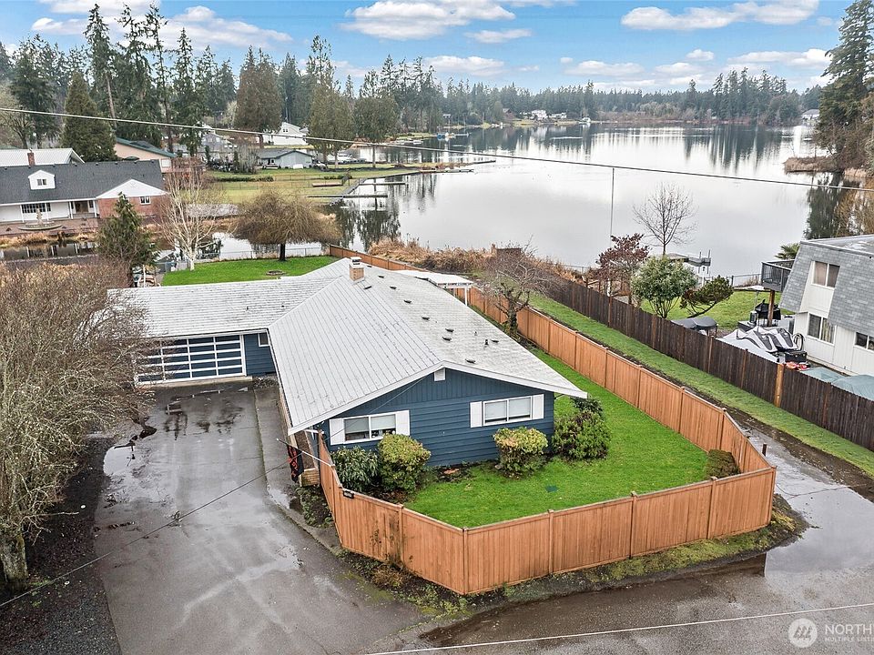 Well-appointed single-story home with 4 bedrooms and 2.25 baths. The open living room with a fireplace flows through the dining room to the kitchen. The kitchen is ideal for cooking and hosting; stainless appliances, wooden cabinetry & breakfast bar. Enjoy relaxing lake views from the living room, dining room, and covered patio. Primary bedroom with private 3/4 bath. Fully fenced yard with a firepit & 55 feet of waterfront. Oversized 2 car garage w/storage perfect for everyday life and extra lake toys. The home is located on a private road with access to a private boat launch right next door! Spanaway Lake is a motorized lake, great for boats, jet skis, and fishing.