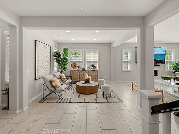 Tucked away in the coveted Serena at Vila Borba, this exceptional Plan 3 residence, built by Standard Pacific Homes, offers the pinnacle of style, comfort, and functionality. Spanning an impressive 3,100 square feet of living space, this home features 5 bedrooms and 3.5 bathrooms, making it the largest floorplan in the Serena tract. From the moment you step inside, contemporary upgrades set the tone. Custom window coverings, elegant granite countertops in the gourmet kitchen, and a sleek, low profile fireplace in the living room create an inviting atmosphere wrapped in luxury. The kitchen blends high end style with everyday function, featuring upgraded stainless steel appliances including a Thermador 36 inch Professional Series gas rangetop, a large center island with counter height seating, and a walk in pantry with an adjoining prep area. A builder upgraded three panel sliding glass door seamlessly connects the living room to the backyard, flooding the home with natural light and creating a perfect indoor-outdoor flow. The thoughtfully designed layout also includes a main floor guest suite, an attached three car garage with epoxy flooring, and a lavish primary suite featuring a custom built-in closet and a private covered balcony. Sustainable living is built in with an owned 23 panel Tesla Premium Solar System. The backyard offers a lush, fruitful escape with peach, donut peach, almond, and lemon trees. Residents of Vila Borba enjoy manicured community spaces, scenic walking paths, multiple parks, and rolling hill views. Perfectly situated for commuters, this home offers quick access to the 71, 91, and 60 freeways, plus upscale shopping and dining at the highly sought after Shoppes at Chino Hills. Luxury, convenience, and community, this home truly has it all!
