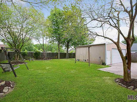 Well maintained 3 bedroom home in Prairieville on a nice size lot with a large 30 x 24 workshop! Walking up to this home you will be greeted with clean landscaping, an electronic driveway gate and a charming front porch with columns. The living room is spacious and features a fireplace with cypress builtins and a wall of windows overlooking the private backyard. The kitchen has been updated to include granite countertops, cypress cabinets, stainless steel appliances, an island, and it is open to the breakfast area. There is a formal dining room as well that also makes a great office space. The master bedroom has a tray ceiling and a door leading out to the private patio. The master bathroom is large featuring double vanities, two walk-in closets, a large soaker tub and a separate shower. The backyard will be your private retreat with a covered patio and lovely trees. In addition to the 2 car carport there is a third parking spot by the shop. The 30 x 24 shop has insulated walls & roof, electricity & built in shelves. In addition to the large workshop, there is also extra storage attached to the carport. To top it off, the roof is 5 years new, the HVAC is less than 2 years new, and the camera system remains with the home. This home did not flood and flood insurance is not required.