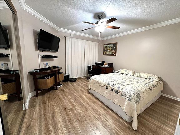 Pool viewCorner unitTextured wallsArtistic ceilingLaminate floorsEnclosed screened patioCrown moldings