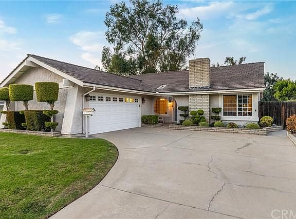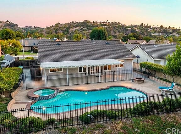 SINGLE STORY POOL HOME OVERLOOKING VIA VERDE COUNTRY CLUB. Beautiful curb appeal features a green lawn, manicured bushes with brick planters, a sweeping concrete driveway, and a covered front porch. The front door opens to a tiled entryway and to a spacious living room offering carpeted floors, a brick fireplace, crown molding, a ceiling fan, and overlooks the front yard. There is an office off the entry with an arched opening, tiled floors, crown molding, a ceiling fan, and a second hallway entry which was converted from the fourth bedroom and could easily be converted back. The family room features French doors with side lights and windows that overlook the backyard and let in plenty of natural light, vaulted ceilings, tiled floors, and open to the kitchen. The remodeled kitchen offers classic white cabinetry, corian countertops, stainless steel appliances, recessed lighting, a sink with beautiful backyard/pool view, and a dining area. The master bedroom is situated on the opposite side of the home as the other bedrooms and offers carpeted floors, vaulted ceilings, views of the backyard, a wall of mirrored closets, a ceiling fan and master bathroom with a walk-in shower and sliding glass enclosure doors. The tiled hallway leads to three additional bedrooms with ceiling fans, including the office. The hall bathroom offers a shower/tub with obscure glass sliding enclosure. There is also an indoor laundry room with cabinetry that leads to the attached two car garage. The backyard features a sparkling pool and spa with spillway, brick coping, concrete decking, a fire pit, manicured perimeter bushes with block planters, a wrought iron gate separating a covered wood patio. The rear wrought iron fence provides a beautiful view of Via Verde Country club.