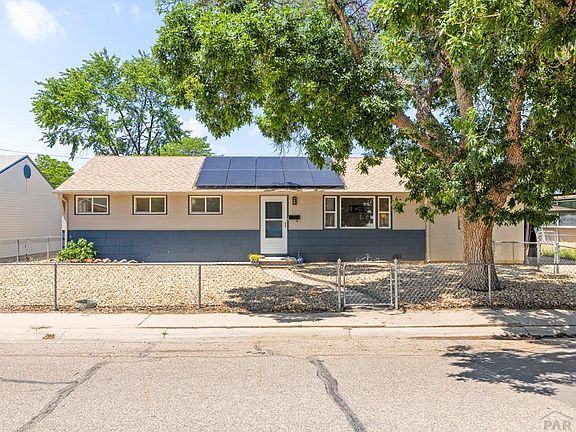 Welcome to this charming Belmont ranch-style home offering convenient main-level living! Featuring 3 bedrooms, 2 bathrooms, and an attached 1-car carport, this home is designed for comfort and functionality. Enjoy the spacious kitchen with abundant counter space, ample cabinetry, stainless steel appliances (all included), eat-in dining area, and stackable washer and dryer. Brand new carpet has been installed throughout, adding a fresh touch. The generously sized bedrooms include a primary suite with a full ensuite bath. Natural light fills the home through updated windows, and the solar panel system adds energy efficiency. The front yard is xeriscaped with mature trees, while the backyard offers a large patio with pergola—perfect for outdoor gatherings. Conveniently located near North Side shopping, restaurants, and CSU-Pueblo, this home has so much to offer!