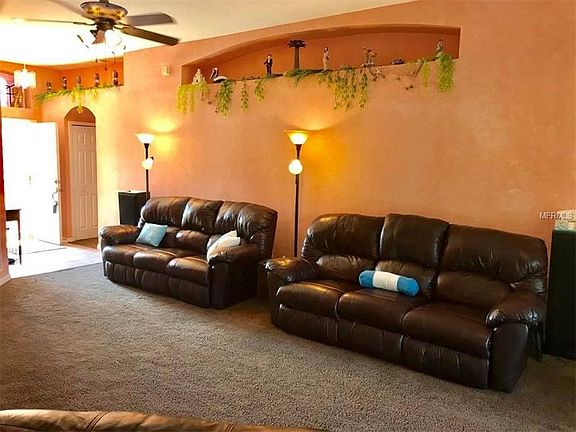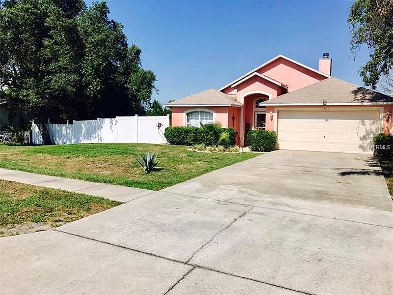 Wow! This home has so much to offer. Recently painted exterior and sitting on a HUGE lakefront lot. Offering three bedrooms and two baths with a 2 car garage. The master bathroom is well equipped with a garden tub and separate shower and double sinks. The other two bedrooms are located in the front of the home. The ceilings have desirable Knock down texture (no popcorn). There is also a wood-burning fireplace, screened in patio as well as an open area patio and an eat in area off kitchen. Indoor laundry room too.