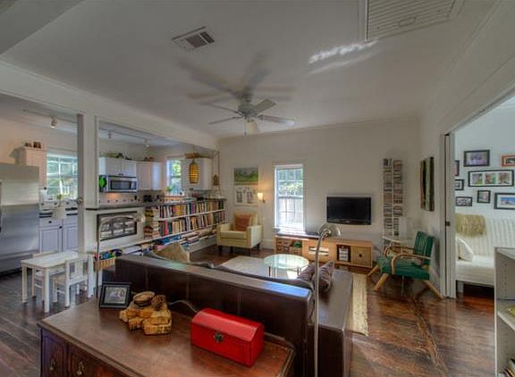 Multiple dwellings on .219 acre, STR license is within biking distance to UT and Downtown. Main house has been updated with wood floors, tall ceilings/crown molding, bright/open floor with lots of windows/skylights. Detached oversized 2 car garage 784sqft includes half bathroom and alley access. Overhead studio apartment 490sqft, can be rented on Airbnb, has infrastructure for full kitchen and W/D. Private fenced yard, carport, established trees, landscaping, and set up for motorized gate to be installed.