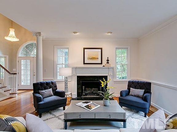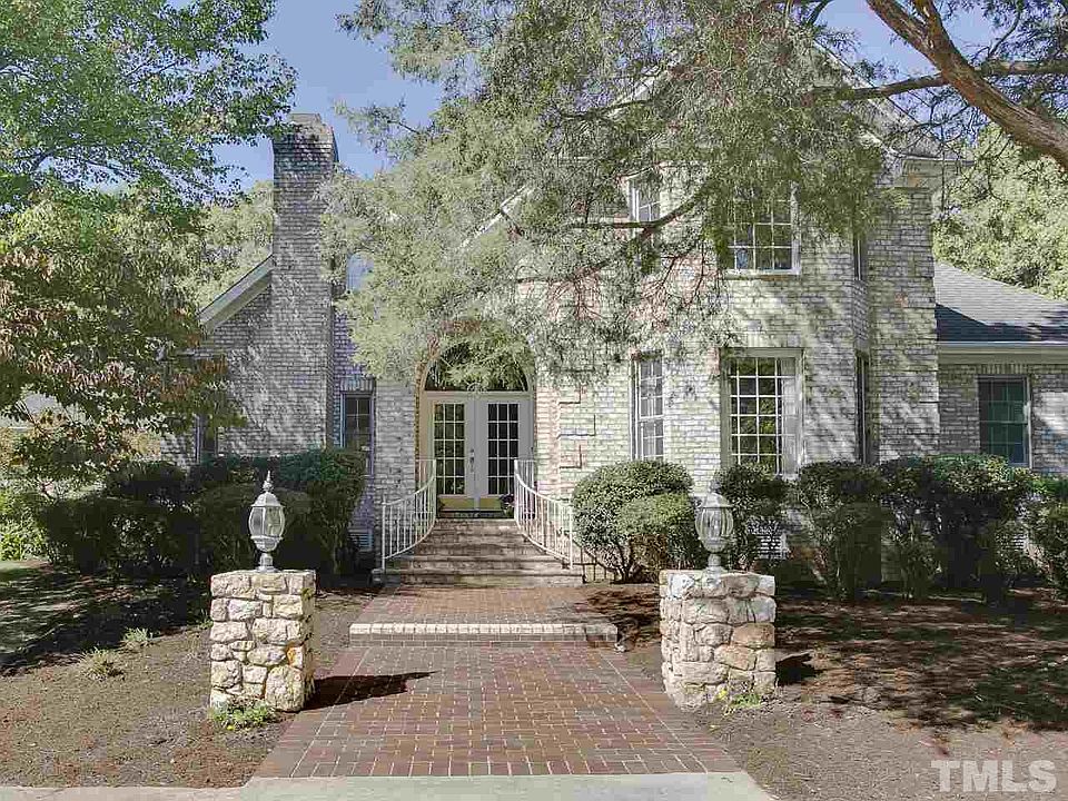 Illuminated columns of original Cattlemen Stone hint at 1703 Faison Road's classic taste. A custom built Croasdaile brick home on .9 acres offers new interior paint, hardwood floors, glorious windows, 2 fireplaces, spacious chef's kitchen w/premier appliances, large island & custom cabinetry. Like many European estates, the master bedroom's French Doors open to a covered porch & a classic courtyard. Masterful landscaping with Witherspoon Rose garden, an artistic trickling pond and a circular driveway.