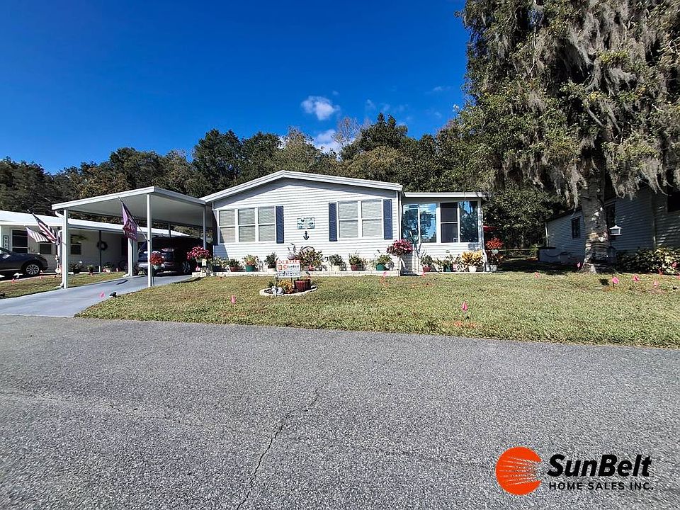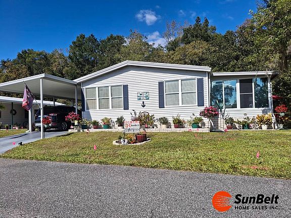 1990 Sunc - 1,152 Sq. Ft. Home in Rolling Greens Resort-Style Community Completely updated and move-in ready, this charming home offers modern comfort and stylish finishes throughout. Enjoy stunning hardwood floors, cathedral ceilings, and a bright, open-concept layout. The kitchen features a new island and double sinks, perfect for entertaining or daily living. Relax in your private backyard oasis, ideal for gatherings or quiet evenings, and take advantage of a golf cart parking spot conveniently located at the rear. The winter/summer lanai with new tinted windows offers year-round enjoyment, while the beautifully landscaped yard with vibrant flowers adds charm and curb appeal. Additional upgrades include a new tankless hot water heater, new washer, and all-new plumbing. The large utility/laundry room provides ample storage space. Rolling Greens Resort-Style Community offers the ultimate retirement lifestyle with three pools (one heated), pickleball courts, corn hole, wiffle ball, dances, bazaars, and so much more. This well-maintained home combines comfort, convenience, and resort-style living at its finest.
