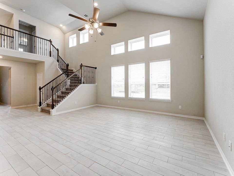 Discover this stunning new construction inventory home designed for modern living and everyday comfort. Offering 4 bedrooms, 3.5 bathrooms, a 2-car garage, and 2,837 square feet across two spacious stories, this home impresses from the moment you step inside. The family room features soaring two-story ceilings that flood the space with natural light, while wood-look tile flooring throughout the common areas delivers style and durability. The thoughtfully designed kitchen shines with under-cabinet lighting and opens seamlessly to living and dining spaces—perfect for entertaining. A private 4th bedroom with en-suite bath is ideal for guests or multigenerational living. Enjoy outdoor living year-round on the oversized covered patio on a Corner Lot, and appreciate practical upgrades like full gutters and timeless 3-sided clay brick. Located minutes from I-45 and The Woodlands, low tax rate, an amenity center with pool and park, and close proximity to Carl Barton Jr. Park