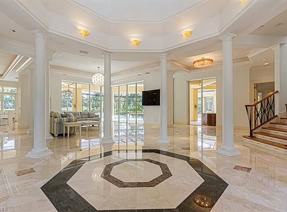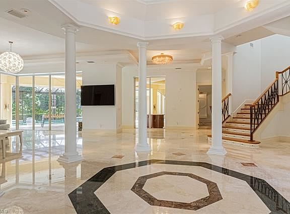 Masterfully crafted custom Executive Retreat with alluring views of the Pelican Marsh golf course and over 7800 sf of sophisticated yet relaxing lifestyle. Marsh Links boasts only 32 homes in the heart of Pelican Marsh in North Naples. Perfectly designed for large group entertaining, yet many areas of relaxation opportunities inside and out. Luxurious living abounds in 5 spacious Bedrooms plus den, 5.5 Baths, true gourmet chef's kitchen, private poolside cabana, 3 car garage, and more! A second floor opens to a world of its own with full bath, walk in closet, ample kitchen/wet bar, and perfect setting for recreation, family fun, or spacious entertaining. And, of course, views of its own! Magnificent oversized outdoor area with pool, spa, private sun patios, outdoor kitchen, fireplace. and breathtaking view. Home has been completely repainted to a neutral white color. Photos are now updated--enjoy the transformation!