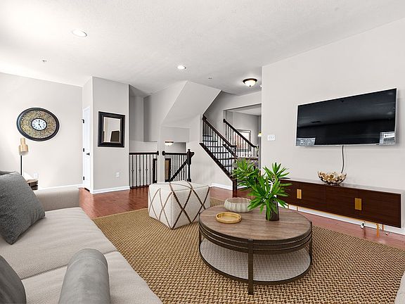 Step inside this gorgeous LIKE NEW townhome in the sought-after gated community of The Pointe at Adams Ridge! From the moment you walk in, you’ll love the bright, open layout & beautiful hardwood flooring. The main level is designed for both everyday living & entertaining, with large windows, neutral colors & great flow. The kitchen takes center stage with striking expresso cabinetry, SS appliances, a roomy pantry, & a large island that makes cooking easy. Just off the dining area, a composite deck offers the perfect spot to unwind. Upstairs, the owner’s suite is a true retreat w/ tray ceiling, walk-in closet & a spa-like bath w/ 4 foot bump-out - featuring double sinks, soaking tub, shower. Two additional bedrooms, full bath & upstairs laundry add convenience. The lower level provides a flexible space which makes a great gym, storage, or can be easily finished. Life at The Pointe comes w/ unbeatable amenities—pool, clubhouse, fitness center, party rooms, theatre, courts & playground.