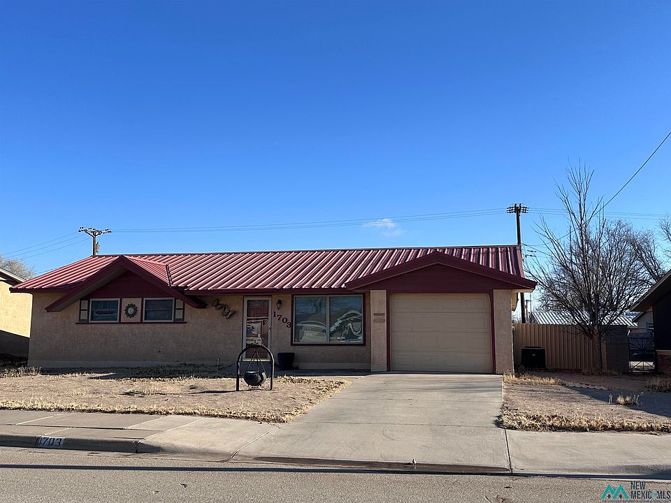 This well maintained 3 bedroom, 2.5 bathroom home offers 1,627 square feet of comfortable living space. The property features a 24x24 shop complete with a half bath, window unit, 2 overhead doors, ample shelving and overhead storage providing a perfect space for all your projects. Inside, you'll find a large den highlighted by a wood burning fireplace and built in shelves perfect for relaxation or entertainment. The main bathroom features both a tub and shower. The home also includes a laundry room and attached one car garage with electric garage door opener for added convenience. Enjoy peace of mind with a new HVAC system and hot water heater while solar panels offer a renewable energy source that can potentially reduce monthly expenses. The exterior is designed for durability and security with a metal roof and metal fencing. Both front and back yards are equipped with a sprinkler system for easy maintenance. The covered back porch provides space for grilling and outdoor gatherings, while extra parking is available on concrete in the back! The property presents a blend of comfort and functionality in a desirable location.