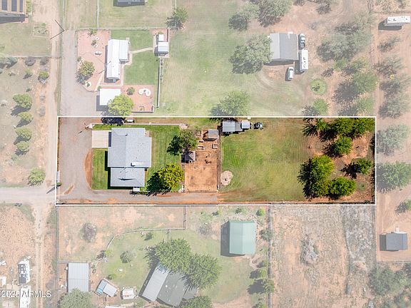 Lovely, well-maintained home on a lush, green acre+ with mountain views in Camp Verde. There is a large garden plot with a green house. Out buildings include a gazebo, gardening shed, and chicken house. There is an orchard with eight, mature fruit trees. The well is in a covered shed, and provides the water for the landscaping . The home has three bedrooms with 2 full baths. There is a large room off the kitchen that could serve as an additional bedroom with a 1/2 bath, or a family room. The great room opens into the kitchen/dining area with an electric fireplace. The kitchen has a large island with butcher block counters and white cabinets. There is ample storage throughout the home with a large food pantry and linen closet. The large laundry room includes a utility sink. The color palate is neutral and pastel. Lots of large windows create a light, interior environment. You will want see this "oasis" in the desert. Sellers are MOVIVATED