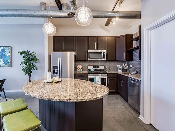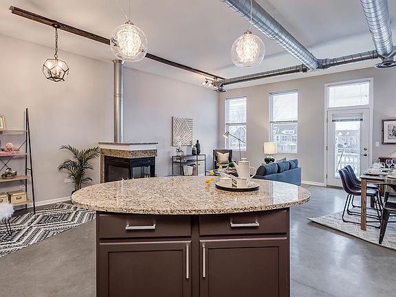 Trendy Urban Loft Style Living in Aurora! Updated Modern kitchen with Brand new Appliances. Refinish Wood Stair witch cable Railing, Modern Light Fixtures with Wood Finish!! New Power Outlets include USB chargers Fully painted including closet door Finished Concrete Floors, Master Bath with Dbl Sink & Walk-In Closet. The 2 Decks off Family Room & Upper Floor Bedroom both view the Park & Fountain. Spacious Family Room with 3 Sided Granite Fireplace. Includes Attached 2 Car Garage Plus Plenty of Parking in Both Front & Rear of Unit. Close to Schools, Shopping, Dining, Train & Hwys, New Carpeting in Bedrooms. Owner pays water and association fee. Renter is responsible for gas and electric. No smoking allowed inside house. Up to 3 pets allowed. Tenants must up-keep filter changes on furnace. Lease is minimum 1 year. Plenty of additional spots outside garage. Renters must fill out application form prior to scheduling a tour of the place. Contact me via email for application.