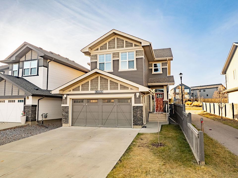 Backing onto greenspace in the award-winning community of Cy Becker, this custom-built 2-storey impresses from the moment you step inside. A spacious foyer opens to a bright floor plan with 9’ ceilings and rich oak hardwood. The living room features a gas fireplace with stone surround, flowing into the chef-inspired kitchen with modern cabinetry, quartz countertops, stainless steel appliances, eat-up island, and a walk-through butler’s pantry. The dining area leads to your private deck with peaceful views. Upstairs, enjoy a vaulted bonus room, three generous bedrooms, a 4-piece main bath, and upper-floor laundry. The primary suite features an electric fireplace, walk-in closet, & spa-like 5-piece ensuite with soaker tub and glass shower. Additional highlights include A/C, built-in Sonos speakers in key rooms(wifi receiver incld), & tankless hot water. The basement is laid out and ready for your finishing touches. Trails, playgrounds, parks, & amenities are just steps away—this is a perfect family home.