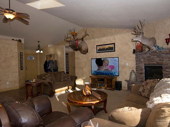 Looking for over an acre of land with a single level home in Central Oregon? This 3 bedroom, 2 bath home also has a large office that could be a 4th bedroom, open vaulted great room with floor to ceiling rock fireplace, large picture windows, skylights, wood style floors, tile and travertine countertops, walk in master shower, soaking tub with tile surround, 2 walk in closets, landscaped fenced yard with rock propane fire pit, deck, hot tub, and just minutes to Mt. Bachelor, Sunriver and Bend.