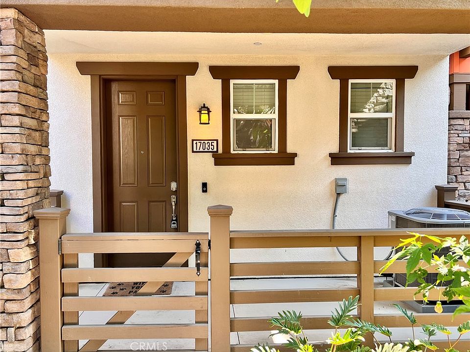 Welcome to this beautifully maintained 3-bedroom, 3-bathroom condo, perfectly situated in the peaceful interior of the community, away from traffic noise. A charming path through lush greenery leads to the fenced front porch beneath a second-level balcony. Inside, the open interior boasts clean lines and a neutral palette, creating a modern and inviting atmosphere. Two bedrooms feature their own private en-suite bathrooms for maximum comfort and privacy, while each bedroom is outfitted with a ceiling fan for year-round comfort and energy efficiency.Enjoy premium upgrades throughout, including top-brand built-in kitchen appliances, a very new refrigerator, a whole-home water filtration system, upper-level laundry with washer and dryer included, fire sprinklers, dual-pane windows, and a tandem two-car garage.Located in a top award-winning school district and within walking distance to multiple schools, this home is ideal for families seeking exceptional education opportunities. Commuters will appreciate the easy access to nearby freeways, while the close proximity to restaurants, major retailers, entertainment, parks, and medical facilities ensures everyday convenience.