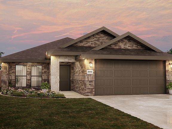 This 1,650 square-foot stone ranch-style home welcomes you with an inviting, elegant stone entry. Brick and stone columns frame a quaint front porch perfect for enjoying a warm cup of coffee on a relaxing morning. This affordable new home offers a 3 bedroom, 2 bathroom open concept floor plan including spacious gathering spaces ready for entertaining or quality time together. The long center island in the kitchen is made for your newest cuisine creations, along with a connected dining room so you can easily enjoy company while cooking! Finally, this home offers a large back patio, great for hosting outdoor get-togethers! This home is charming and functional, with plenty of storage and a sizable laundry room.