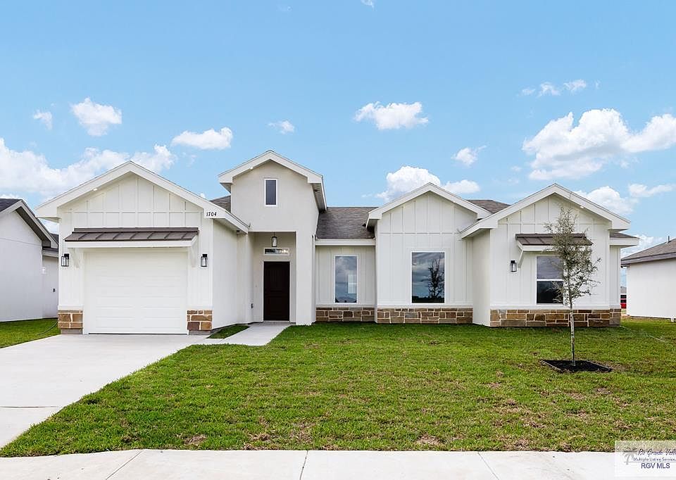 Beautiful 3 bedroom, 2 bath and 1 car garage new construction home located in one of Mercedes's newest subdivision, Valley Ranch Estates Ph 2. This home features an open-concept floor plan, gorgeous tile floors, quartz countertops, wood treated fence around the back of home and sod in front of home. So don't miss out on this great opportunity and come see your future forever home.