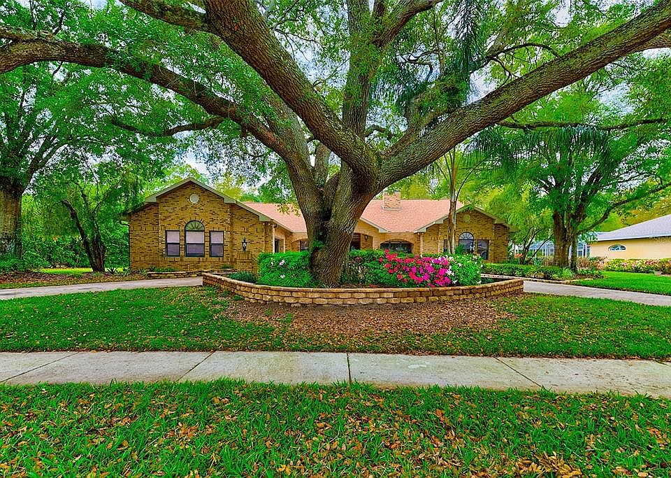 Introducing an exquisite haven nestled in a secluded enclave, this custom-built masterpiece embodies luxury living at its finest. Boasting four bedrooms and three baths, this sprawling 3708 square foot retreat stands as a testament to meticulous craftsmanship and thoughtful design. Approach the residence and be greeted by a picturesque circular driveway, flanked by lush, mature trees offering respite from the summer sun. Step inside to discover a grand brick archway that sets the tone for the home's architectural splendor. Entertain guests in the formal living and dining areas, adorned with a double-sided fireplace that seamlessly connects to the cozy family room. The kitchen, equipped with granite countertops and abundant cabinetry, opens to a charming eat-in area overlooking the scenic outdoors. Revel in the convenience of a split floor plan, with three bedrooms and two bathrooms situated on one side of the home, including a pool bath for added comfort. The expansive master suite, complete with a lavish bathroom, beckons relaxation and opens onto the caged pool area, creating a seamless indoor-outdoor flow. Outside, discover an alfresco oasis with an outdoor kitchen, ideal for hosting gatherings and enjoying Florida's year-round sunshine. Not to be overlooked, an oversized recreational room offers endless possibilities, serving as a potential in-law suite or guest retreat. With a newly installed roof adding to the home's allure, this property stands as a beacon of luxury living in a class of its own. Experience the epitome of sophistication—schedule your private showing today.