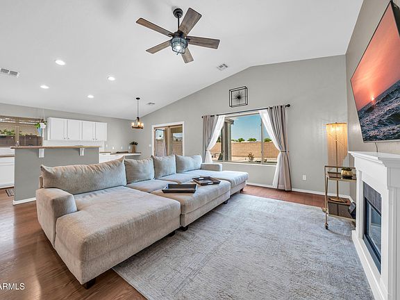 Welcome to this beautifully maintained, 4BR, 2BA retreat in a gated community. Nestled on a corner lot with north/south exposure, this home offers both comfort & convenience, just minutes from dining, shopping, & entertainment. The primary bedroom boasts an oversized space that would easily accommodate additional furnishings, a relaxing garden tub w/separate shower & toilet room. The home offers an open layout, while the backyard oasis, includes a sparkling pool w/water feature, built in fire pit with bench seating, covered patio & mountain views. 2020 Trane XR HVAC system. Enjoy comfort & convenience, in a warm/welcoming community, centrally located near popular restaurants, shopping & activities. A rare find in today's market, that you won't want to miss.