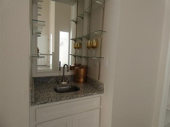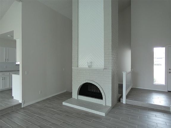 Ideal home.attractive and spacious! Unique layout features a pass-thru fireplace which separates the spacious living area & the study nook-wine room with wet bar. Wood-look tile makes the living areas & kitchen light & bright. Kitchen has a new refrigerator, white cabinets, stainless appliances + great storage. Spacious master bedroom with attached bath features separate vanities, gray granite, and dual closets. Two nice bedrooms share an updated bath. Big back yard has tall tress for shade. New AC, roof 2016.