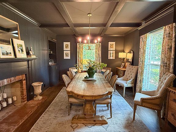 Completely reimagined with exceptional craftsmanship, this 4-bed, 3-bath home blends timeless character with modern luxury. Enjoy three fireplaces—in the living room, formal dining, and primary suite. The dining room showcases a beam ceiling, built-ins, French doors, and real wood floors. The stunning new kitchen features custom cabinetry, quartz counters and backsplash, pot filler, stove cove, and built-in breakfast bar, open to a family room with fireplace and rich wood flooring. The primary suite offers a vaulted beam ceiling, French doors to the patio, and a spa-inspired bath with marble floors, walk-in shower, and pass-through laundry. Upstairs includes two bedrooms, a craft room, and a remodeled bath. Outdoors, enjoy professional landscaping, granite walkways, flower beds, a sprinkler system, and large brick-accented patio. New roof, windows, electrical, and full interior remodel complete this remarkable home.