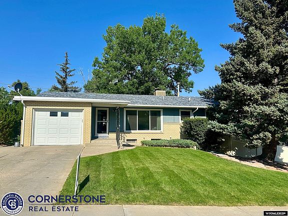 Lovely, well-maintained brick ranch-style home with space, charm, and updates throughout! This spacious property features 4 bedrooms (one non-conforming), 2 bathrooms, and sits on an oversized lot with beautiful landscaping and mature trees. Enjoy oak hardwood floors, a walk-out basement, and two kitchen areas. The home also includes newer windows, water heater, roof & furnace, custom oak built-ins, a large pantry, and a dedicated workshop. Outside, you’ll find a huge RV parking area (32+ft), two sheds, a covered patio, sprinkler, and a peaceful backyard oasis. This home truly has it all—space, functionality, and timeless quality. Call or text Dorie G Nelson with Cornerstone Real Estate for your personal tour: 307-267-1190