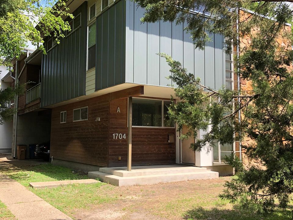 Super cool 3 bedroom with an upstairs deck and separate gym/office area. All bedrooms are upstairs. The property is secluded behind trees and private yet is close to everything on Justin Ln. Little Deli and the market are just a short walk away. There are two, covered off street parking spaces, a small back yard, a nice ample front yard, towering windows in the living room and a hallway of light upstairs. It's the perfect setup for a single or couple working from home.